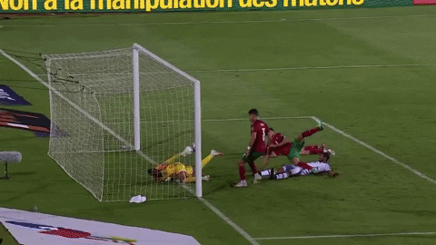Dopo la respinta il pallone arriva dalle parti di Saiss, ancora più vicino alla linea di porta, che si prepara a tirare forse con troppa sicurezza, pensando che ormai è fatta. I tempi, però, evidentemente non erano ancora maturi per un gol del Marocco.