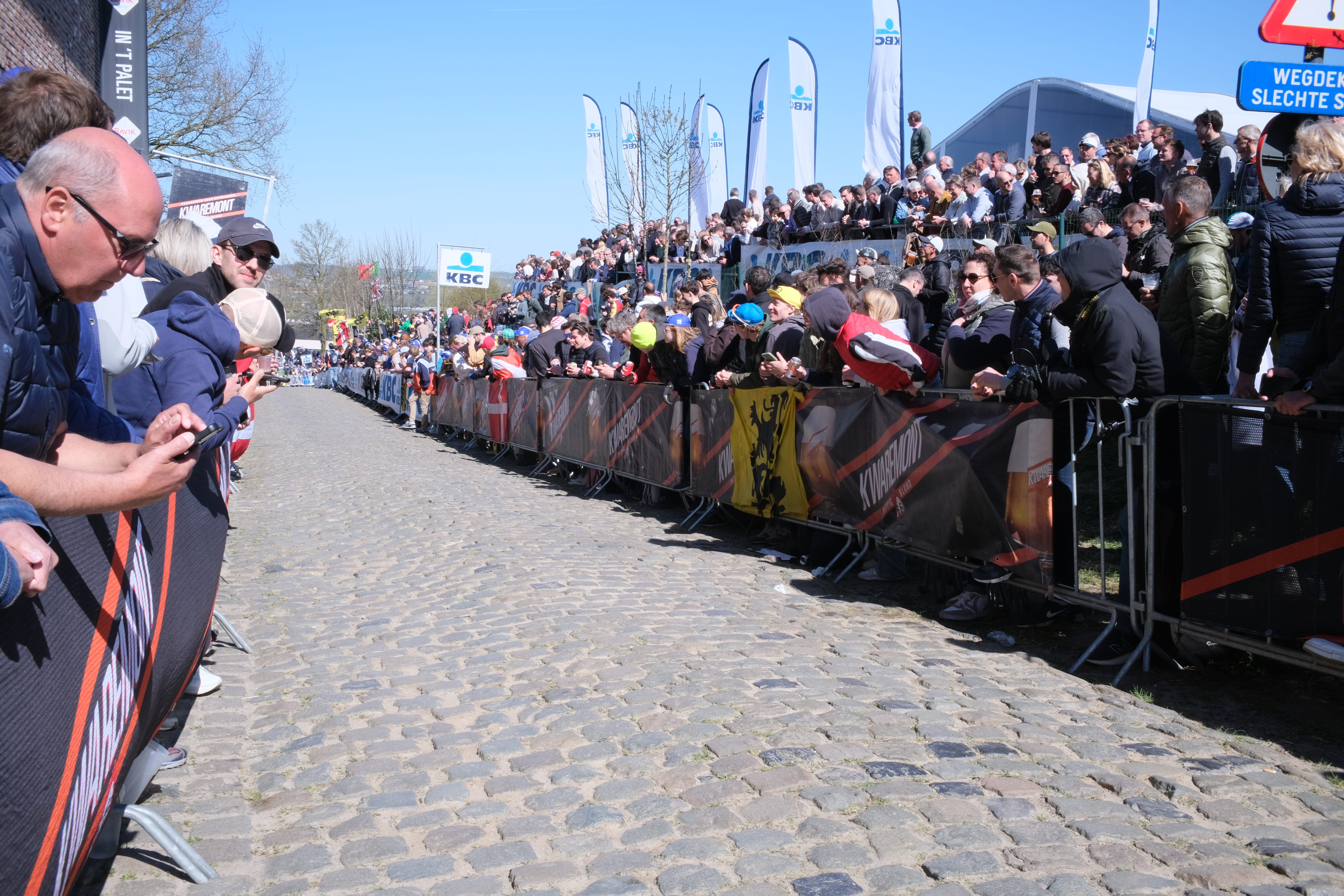 Una gara già di per sé epica - con tutti gli ingredienti che la rendono tale, dai e dalle partecipanti agli attacchi alle volate sul traguardo o ai distacchi di un minuto raccolti in pianura quasi da non crederci - diventa indimenticabile grazie all’atmosfera che si può trovare solo nelle Fiandre: le persone sedute sui davanzali delle case che si affacciano sul Kwaremont, i cori che esplodono ogni cinque minuti per l’eroe indiscusso di casa - ovviamente Wout Van Aert - la musica che non smette mai di risuonare fortissima, ma che viene comunque coperta dalle urla della gente al passaggio del gruppo, il vento che soffia su queste pietre del nord, le sedioline da campeggio affastellate contro le transenne, la gente che si ammucchia, che balla, che si diverte, che si gode una giornata di ciclismo per quello che, in effetti, sempre è e deve essere: Hemingway, grande appassionato di ciclismo, direbbe una festa mobile.