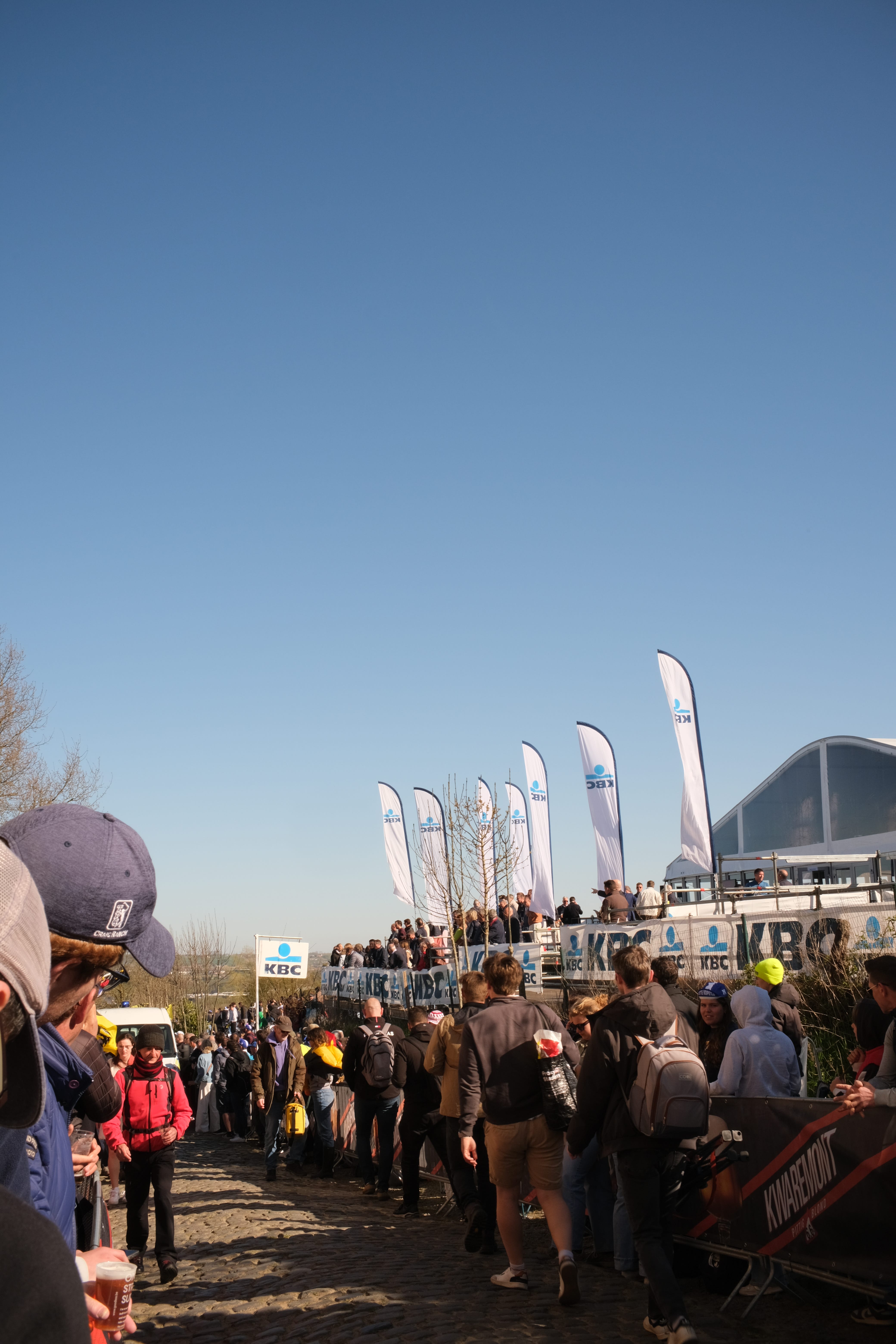 E se, un po’ prosaicamente, pensavi che, alla fine, il Kwaremont fosse solo un muro di pietre tenute molto bene in un punto sperduto del Belgio, sei costretta rapidamente a ricrederci: metteteci una massa di persone infinita accalcata ai due lati, boati e cori da stadio (ma sempre e solo rispettosi) ogni qualvolta che passa un corridore, musica in ogni momento, birra, birra, ancora un po’ di birra, uno strano sole che sta facendo preoccupare tutti i Belgi, panini e patatine fritte come se piovesse e avrete ottenuto l’atmosfera che c’era domenica.